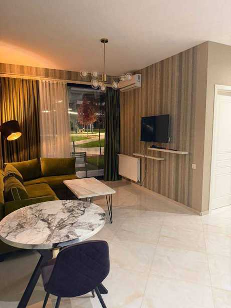 A villa is for rent in Krtsanisi Residence, an uninhabited, newly renovated 2-bedroom apartment, for a minimum of 1 year. The apartment is equipped with all kinds of appliances, 3 air conditioners, 2 balconies with views of the pool and courts, furniture, dishes, and all kinds of equipment. Daily use is available for all family members with a 45-meter swimming pool, fitness club, courts, dry and steam saunas completely free of charge. The pool is covered and heated in winter. There is a cafe operating with the fitness center. One pet is allowed.