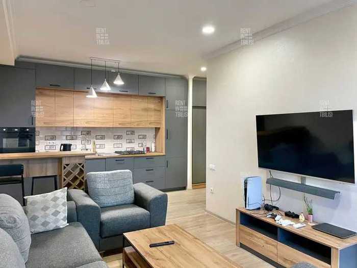 For rent: a newly renovated, fully uninhabited apartment in Vashlijvari, on Machavariani Street. The apartment is cozy, warm, and bright. Furniture, bedding, tableware - everything is brand new. In an orderly building with a locked entrance. 2nd floor, has a closed balcony with a table and chairs. There is a bus stop in front of the building. Stores, a bakery, pharmacies, etc., are within a 2-3 minute walk from the building.