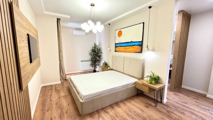 Recently renovated apartment on Petre Kvartadze Street. The apartment is located in a clean and orderly building equipped with two elevators: passenger and freight. The location is ideal - the building stands next to the 'Evex' medical center, very close to 'City Mall'. It takes 10 minutes on foot to reach Vazha-Pshavela metro, and there are bus stops nearby. In the apartment, you will find all necessary appliances: a dishwasher, a microwave oven, a refrigerator, and a gas stove, as well as a complete set of kitchen utensils. Central heating, hot water, a washing machine, and an air conditioner are installed. The apartment has a large living room with a TV and classic furniture, two spacious bedrooms, separate wet areas, and a balcony. Here you have absolutely everything you might need.