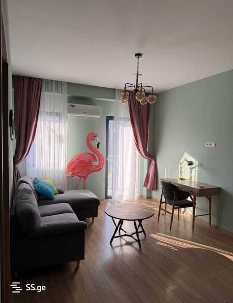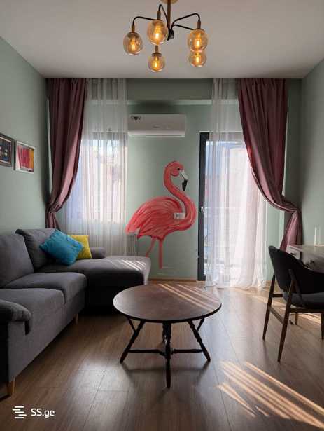 For rent is a renovated 3-room apartment with two bedrooms, every room has a window and primary lighting. The apartment has an active fireplace, and the house has a well-arranged basement (entrance from the apartment). The apartment is fully furnished and equipped with appliances. All necessary facilities, supermarkets, and Sukhum and Maghlivi universities are nearby. Payment for the first and last month is required.