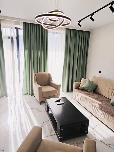 For rent is a 3-room renovated uninhabited apartment in the Dona building. With the highest quality technology and furniture. German laminate, heating boiler and plumbing, Italian radiators, Spanish tiles, south Korean branded appliances, etc. The house has built-in wardrobes and storage areas, as well as a water tank. The apartment also has a garage and a basement.