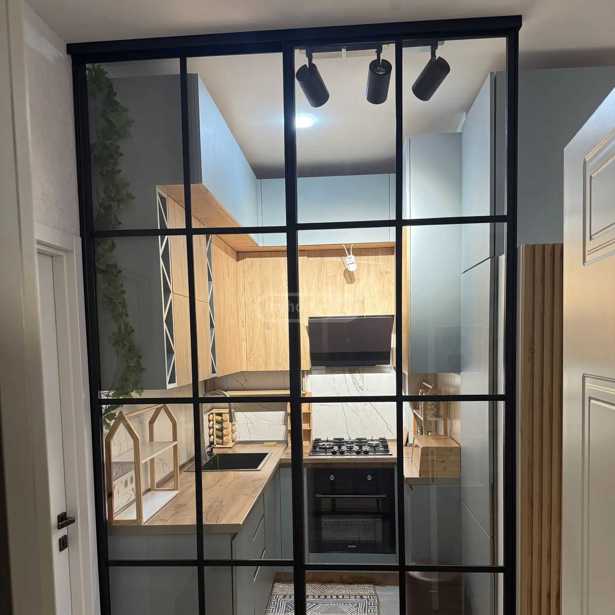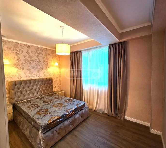 For rent: newly built, non-standard project 2-room apartment of 45 sq.m, newly renovated, on the 9th floor of a 13-story building. The apartment has one bedroom, a living room, and a dining room, a bathroom. It is rented with furniture and appliances. It has heating and air conditioning, and an alarm system.