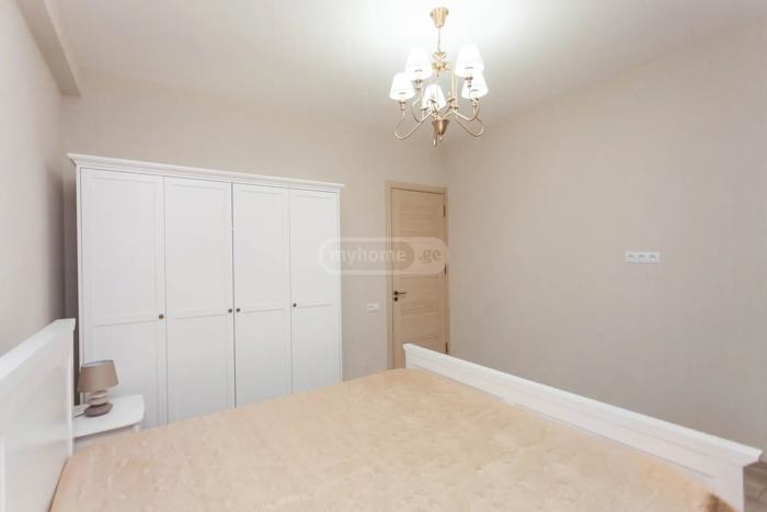 For rent, near Tbilisi Mall, in an elite complex, a 3-room apartment with 2 bedrooms, 2 bathrooms, one of which is the master bedroom, has parking and security cameras. The complex has a green yard, a pool and a stadium, the price is $1100,
