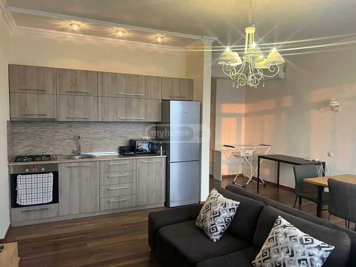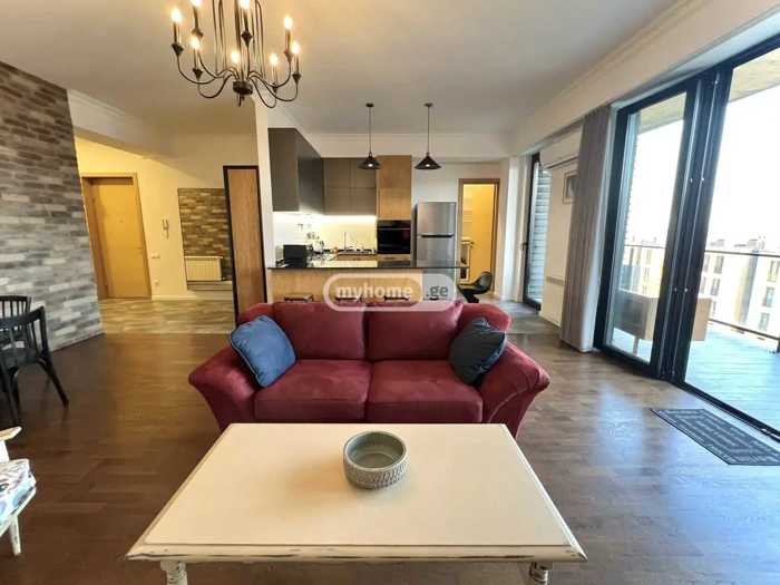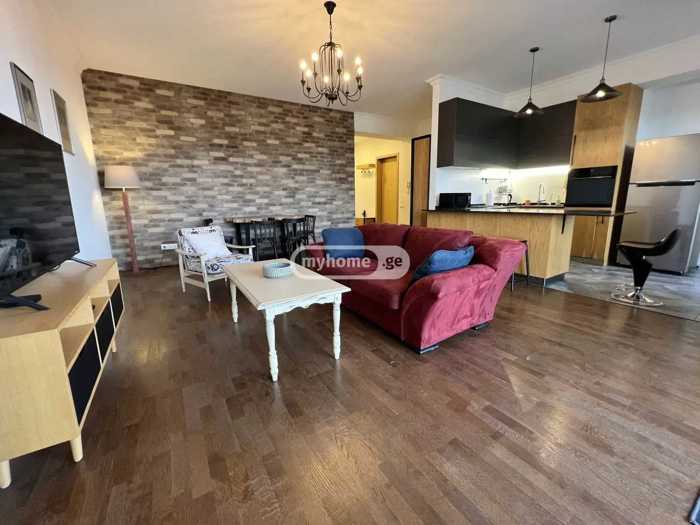 For rent: a newly renovated 3-room apartment in Lisiani with a size of 120 sq.m, featuring 2 bedrooms, a large veranda, and 2 bathrooms. Equipped with high-quality appliances, a dishwasher, a microwave oven, and other kitchen equipment. Fully furnished.