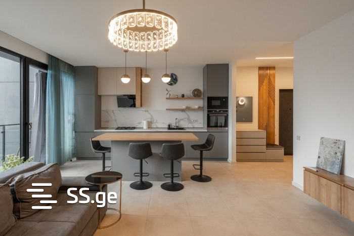 An apartment is for rent in the Saburtalo Palace building (“Saburtalo Palace”), newly renovated! We are renting it out with a 2-month advance payment. Price is $500. Restrictions: pets are not allowed. The apartment is located in Zura Anjaparidze 1 Dead End, above the University metro, just a 2-minute walk away. An ideal location for those who appreciate comfort and urban living. Surrounding it are cafes, restaurants, gyms, and a large supermarket, which will help simplify your daily life. The apartment is designed for maximum comfort and is equipped with all necessary items: microwave, dishwasher, modern furniture and appliances, internet, air conditioning, central heating, and more.