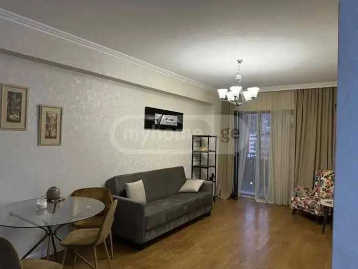 In a newly constructed building in Saburtalo, a two-room renovated apartment is available for rent, furnished and equipped with appliances.