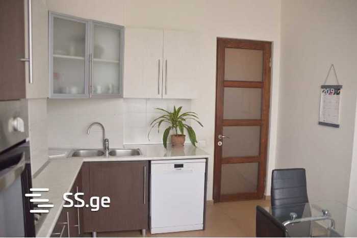 Flat for rent with all necessary furniture and appliances (washing machine and dishwasher). On Abuladze Street ,in the middle of the embassies of Turkey and Czech Republic. Has large living room, kitchen, 2 bedrooms (1 bedroom with own bathroom), cabinet, 3 balconies, underground parking for 2 car seats. The entrance is secured and has video cameras.