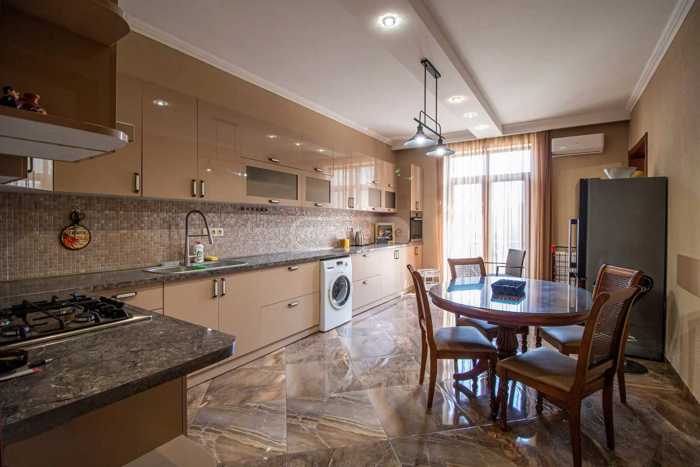 An apartment is for rent in a newly built, non-standard project located on the ninth floor of a 15-story building. The total area of the apartment is 87 square meters and includes 3 rooms, among them 2 bedrooms. The apartment is newly renovated and provides a modern and comfortable living environment. The space is ideal for those who want a quiet and cozy atmosphere in the city center. The apartment does not have a balcony, which provides more space in the rooms. The newly built status and modern design create a unique feeling that will make your everyday life even more pleasant.