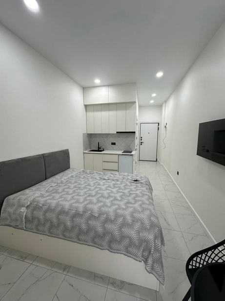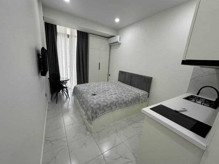 For rent from March Two-room, newly renovated, bright corner apartment in a newly built building, on the 4th floor, in Ortachala, at 4 Gulia St. The area of the apartment is 61.1 sq. m., of which the balcony is 4 sq. m. This is the "Ortachala Residence" building. It takes two minutes from the big bus station of Ortachala. Three stops from Isani metro. The apartment is equipped with all necessary furniture and appliances, including WiFi/television, central heating, and air conditioning. Entry and exit from the apartment and using the elevator is possible with an electric card. The building has a reception area and is guarded 24/7. The first and last month is required.