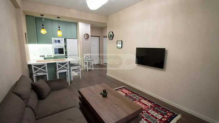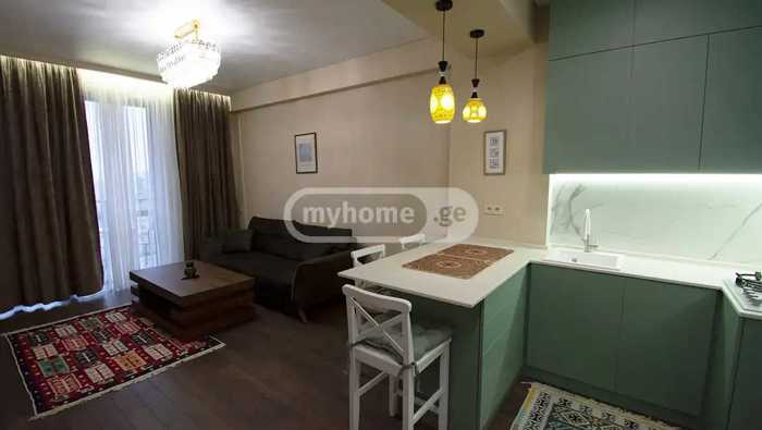 For rent: a 2-room apartment in Ortachala, with high-level renovation, furnished and equipped with appliances. On Kalandadze Street, in the monolithic building next to the Biograph hotel.