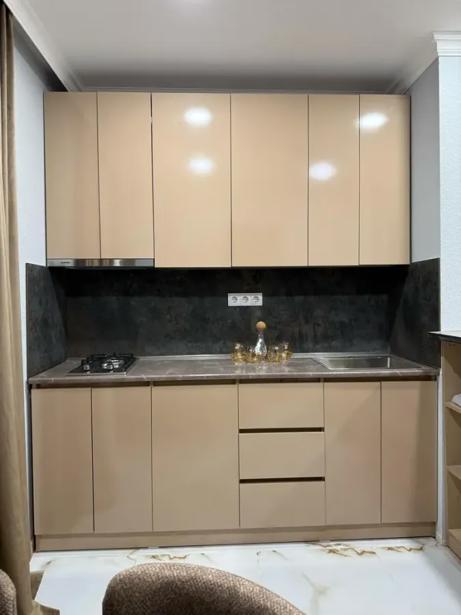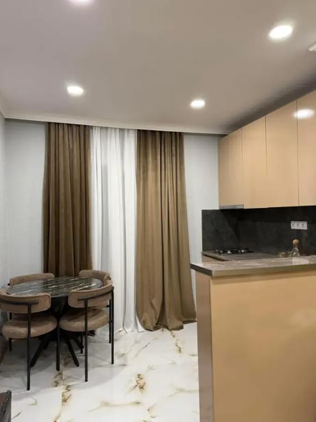 An apartment is for rent in a newly constructed, non-standard project. The total area of the apartment is 65 sq.m and it is located on the first floor of a three-story building. The apartment has 2 rooms, including 1 bedroom and one balcony, which provides additional space for relaxation. The apartment is newly renovated and has not been lived in. The space is bright and cozy, creating a pleasant atmosphere for everyday life. It is ideal for those who appreciate tranquility and comfort in a new environment.