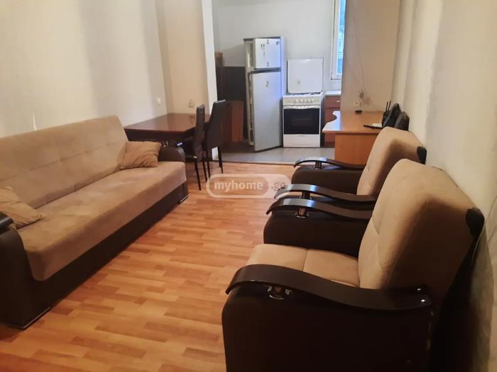 A bright and sunny apartment is for rent in Gldani I Microdistrict, in the 16th building. The apartment is equipped with all necessary furniture and appliances. The kitchen is moved to the loggia, which has allowed for the arrangement of a second bedroom. It is a 5-7 minute walk to Akhmeteli Metro station. All necessary facilities (stores, pharmacies, transport) are close to the building. The price is negotiable.