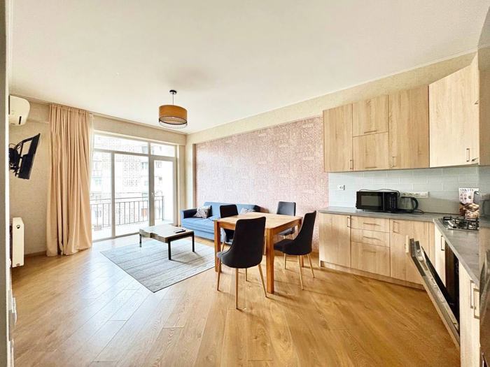 For rent: a 60 m² newly built apartment on Nikoloz Kipshidze Street. This modern residence offers comfort and quality, ideal for those who desire a refined living environment. The apartment is located in a sought-after neighborhood, where infrastructure is nearby and public transport is easily accessible. If you are interested, please contact me at the number specified in the ad. 2 months advance payment.
