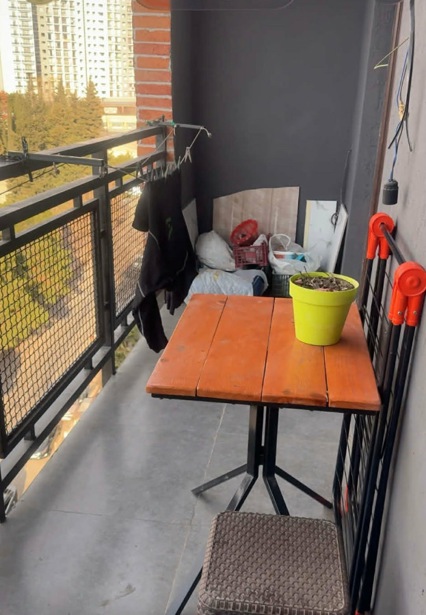 I am renting a 2-bedroom apartment near Akhmeteli Metro on the 8th floor with furniture and appliances. The building's yard has a sports field, children's area, and a green park. And all of this is protected by a 24-hour security service.