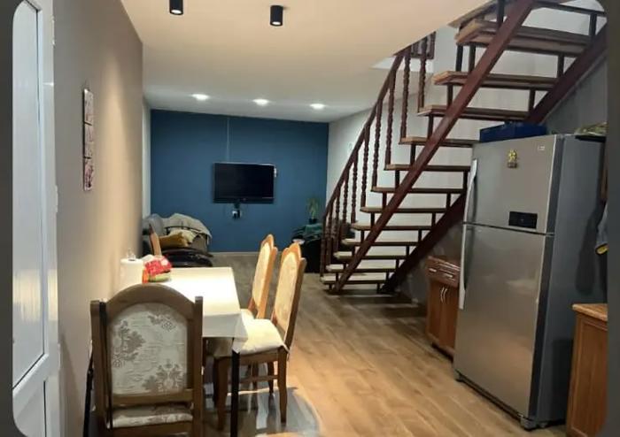 For rent is a newly renovated modern, 2-bedroom house on Manjgaladze Street, a 5-minute walk from the pedestrian bridge (Metro Station Square) and also very close to Nazladavi Metro (7-8 minutes). The apartment is fully furnished and ready for living.