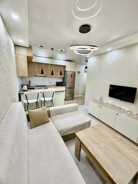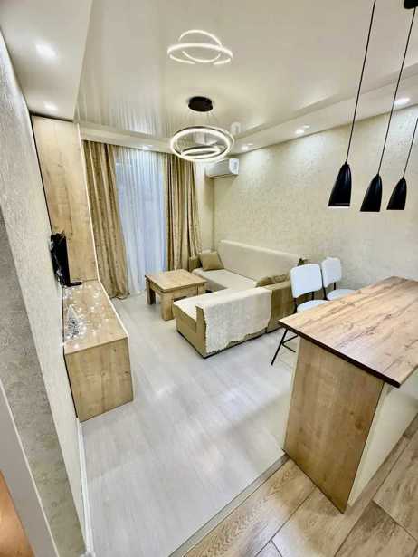An apartment is for rent in a newly constructed building, located on the fourth floor of the fifth story. The total area of the apartment is 45 sq. m and includes two rooms, one of which is a bedroom. The apartment has a non-standard layout, is newly renovated, and provides a comfortable living environment. The apartment does not have a balcony. It is ideal for those who value tranquility and modern space. The new building creates a safe and cozy atmosphere, making everyday life even more enjoyable.