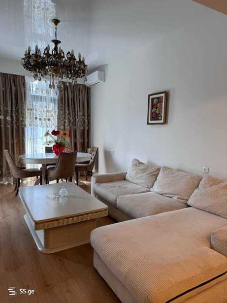 Three-room apartment for rent in Vashlijvari, in a premium class building. The apartment will provide you with all the necessary equipment and inventory, including a dishwasher. There is a Carrefour on the first floor of the building, and there are many necessary facilities around: a beauty salon, a dental clinic, a kindergarten. There are also two children's entertainment areas in the yard. Two months in advance
