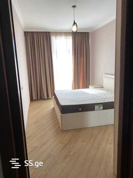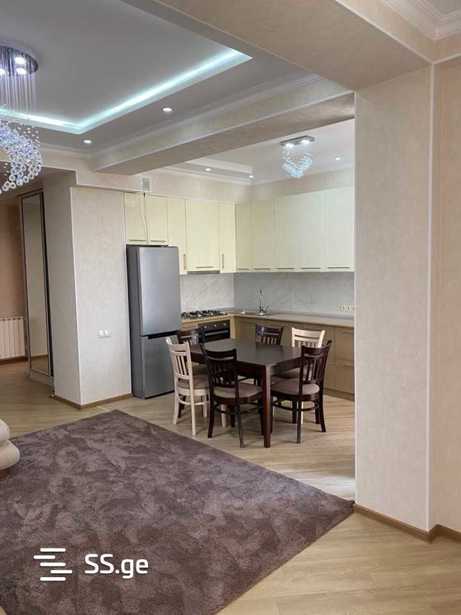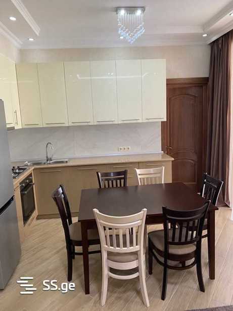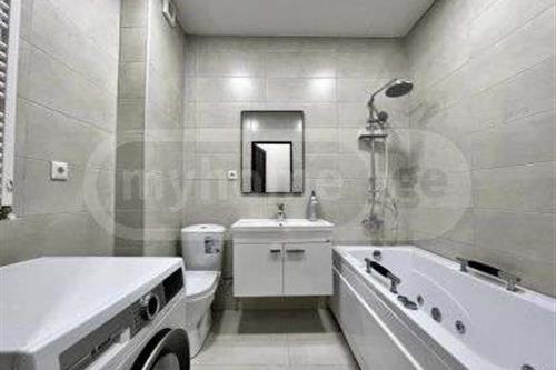 A renovated apartment with furniture and appliances is available for rent in a newly built building across from the Tsereteli Metro, the apartment will be available from October 10.