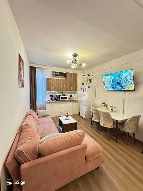 For rent: a clean 35 sq.m. apartment located at 2/10 Evdoshvili Street in Didube, 5 minutes away from the Tsvereteli metro station. The apartment has all necessary furniture and appliances (TV, washing machine, refrigerator). The yard is secured with a barrier. The apartment is located in a quiet and peaceful neighborhood, surrounded by convenience stores.