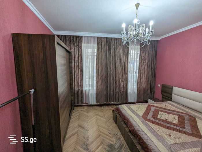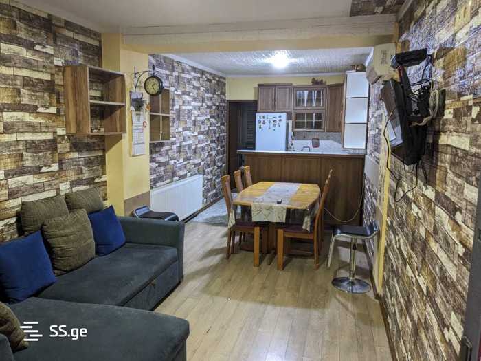 For rent is a bright, cozy 2-room apartment near the Tsereteli metro station. The apartment is equipped with all necessary household appliances and furniture. You will find an isolated bedroom, a cozy studio-type living room, and a loggia. With the advance payment of the first and last month.