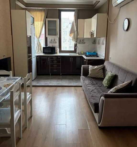 Agents contact me only on WhatsApp (collaboration 50%). An apartment is available for rent on Zhvania Square, (14 Oniashvili Street). The apartment has 3 rooms, 2 isolated bedrooms. The apartment is equipped with all kinds of furniture and appliances necessary for comfortable living. There are no restrictions on nationality.