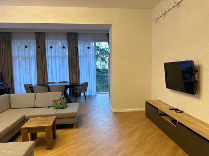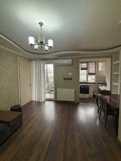 The apartment is located next to School No. 161 on Iosebidze Street. Newly renovated, bright apartment with a balcony, central heating, air conditioning, all necessary items for living.