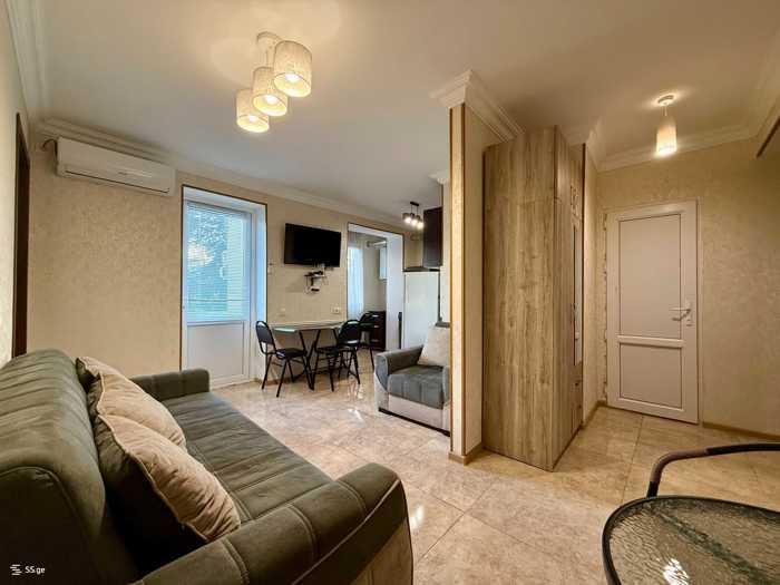 For rent, a newly renovated apartment with 2 bedrooms, furnished and equipped. The apartment is located between the medical metro and technical metro. At the intersection of Bulachauri and Iosebidze. In the surrounding area there is a pharmacy, supermarkets, a school, a kindergarten and a stationery store.