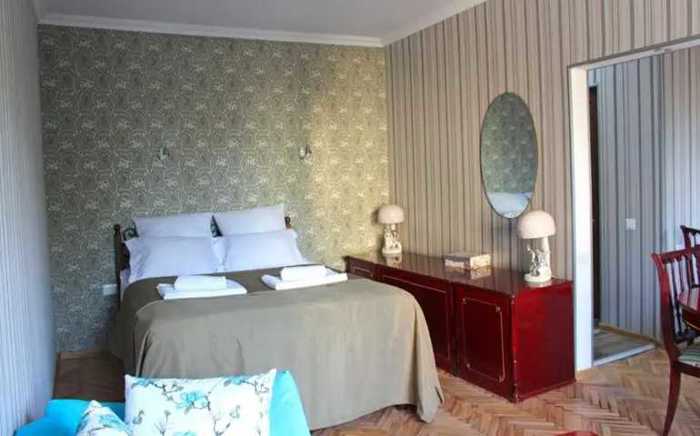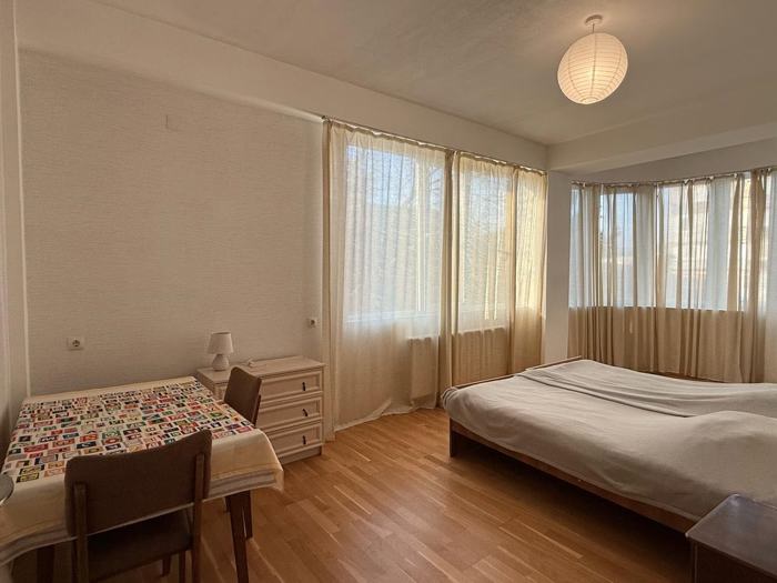 For rent: studio-type apartment in the central area of Tbilisi, just a 2-minute walk from the metro. There are all necessary shops and pharmacies around. The apartment is equipped with all the necessary appliances and items for living.