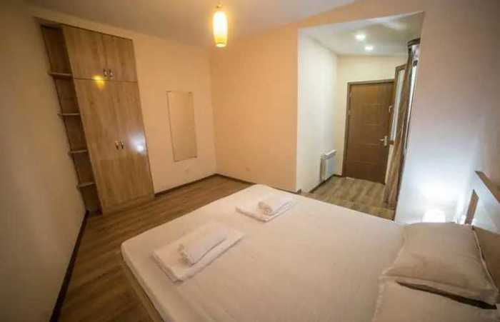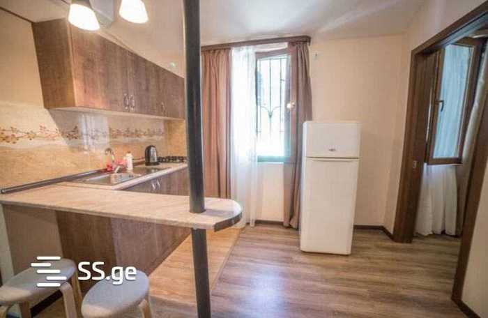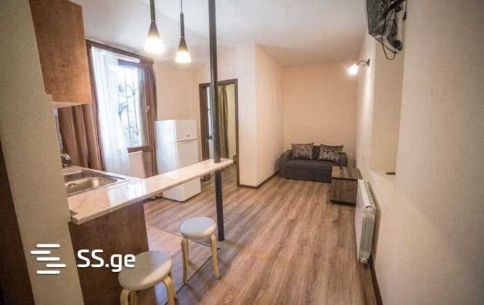 For rent is a three-room super apartment in front of the Marjanishvili metro in a new building, furnished with appliances for $600. It has two bathrooms, air conditioning, and is located 100 meters from the metro. A super apartment with a leather set, bar stools, air conditioning, and a plasma TV.