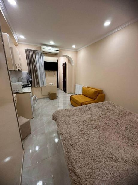 For rent in the historic center of Tbilisi, in Abanotubani, a newly renovated, uninhabited 2-room apartment with an area of 40 sq.m. • Layout: living room, one bedroom, kitchen, and bathroom. The view opens from both main rooms onto the street. • Equipment: the apartment is bright and cozy, fully equipped with modern furniture and appliances. • Communications: natural gas, individual heating system, and hot water (boiler). • Location: 3rd floor (without elevator). The apartment is located in a quiet and touristically active environment. Conditions: • Note: pets are not allowed.