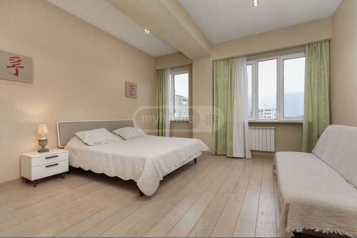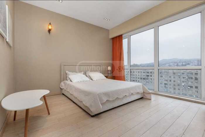 A 4-room apartment of 145 square meters is for rent on the fifth floor of a newly built building near the Samasi Aragveli metro.