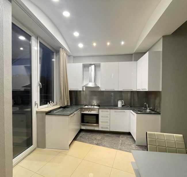 A three-bedroom fully furnished cozy and beautiful apartment in a newly built house in one of Tbilisi s prestigious Vere district, 27 Petriashvili Street. The apartment offers beautiful views from every room, has a large veranda overlooking the Mtatsminda mountains, offers additional balconies with views from bedrooms. A garage for one car is in the -1 floor with elevator connecting directly to the apartment. The apartment is fully furnished with furniture, equipment and accessories, every room has an AC, central heating, security, high speed Internet, TV, fully furnished kitchen with marble tabletops. Bakeries and cafes are located within 5 minutes’ walk from the apartment.