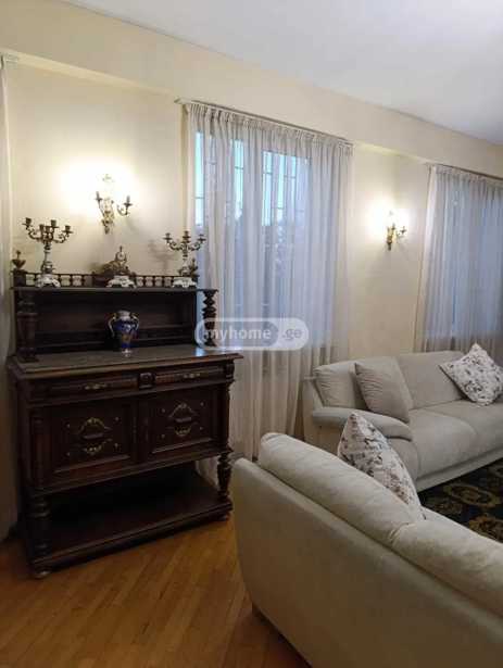 Video available upon request. A spacious vintage apartment is offered in the very heart of Tbilisi's historic center, in the Vera district. The apartment is located on the second floor of a cozy mansion and features its own unique atmosphere and old-world charm. High ceilings (4 m) create a sense of spaciousness and freedom, while thick walls keep the apartment cool in summer and warm in winter. The apartment has preserved its original style with characteristic vintage repairs, giving it a special charm and authenticity. Inside, you'll find a spacious living room, 3 cozy bedrooms, an office — an ideal space for work or study, a bathroom, and a separate toilet. There is also a laundry room, a storage closet, and a large hall, making the living space highly comfortable. The kitchen-dining area is equipped with modern appliances from Ariston. A notable feature of the apartment is its 4 balconies and large terrace — perfect spots for relaxation during warm weather. The building is beautifully covered with ivy, creating an atmosphere of coziness and harmony with nature. The street is quiet, dead-end, and secured with a barrier; parking is available near the house or in the courtyard.