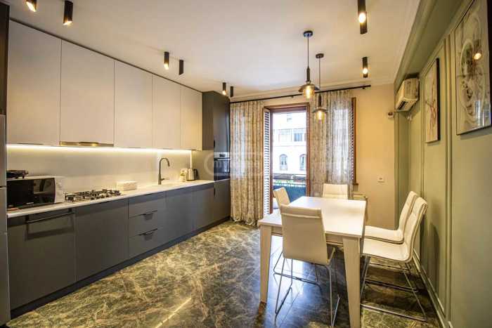 Apartment for rent in Sololaki, in a tourist area (near the Antre), on Amaghlis Street, in a prestigious building. 5/4 floor, 90 square meters, renovated, furnished, with a dishwasher, air conditioner, and all necessary equipment. Two bedrooms, two bathrooms, one master bedroom, a living room, a large kitchen. Bright, all rooms have windows, the apartment has two balconies. Internet, central heating and everything needed to be in the apartment - everything is available. The entrance is secured with cameras, codes, and security. There is a parking space under the building.