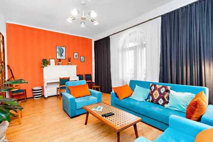 თაბუკაშვილის ქუჩაზე N14, წყნარ ეზოში ისტორიულ კულტურული მემკვიდრეობის სტატუსი მქონე სახლში ქირავდება დუპლექსის ტიპის ახალ გარემონტებული ბინა, სრულად აღჭურვილი, ჭურჭლის სარეცხი მანქანა, ქვევით არის საძინებელი 2 ადგილიანი საწოლით და ასევე ზედა სართულზე 2 ცალი ერთ ადგილიანი საწოლები.