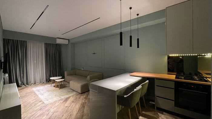 In Varketili, an uninhabited 3-room apartment is for rent near the bridges, each room has a balcony. The apartment is bright and cozy. Located in a newly built building. With high-quality renovation. The apartment includes: all necessary new furniture, new appliances, dishes, and textiles. Central heating, WI-FI, and everything for your comfort. 2 bedrooms. 2 balconies. With all kinds of new furniture and 🫖 appliances. Refrigerator. Washing machine, air conditioners, dishwasher. With WIFI internet and TV, air conditioning, central heating, and hot water. The apartment pictures are real.