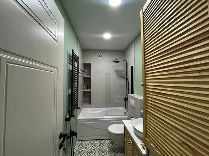 For rent: a 2-room apartment in a newly built building, 50 sq.m., on the 3rd floor, with central heating, furnished and equipped with appliances, air conditioning, internet, and television. Newly renovated, unfurnished, studio-type apartment with a well-maintained yard. Address: Saburtalo, Leo Kvachadze St., "Your home in Lisi" near Lisi Lake. Excellent location, the apartment is situated in an ideal place, in an ecologically clean environment and close to the city center.