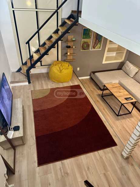 A well-furnished apartment is for rent in Chughureti. It is equipped with all necessary inventory and appliances. All necessary facilities (store, pharmacy) are nearby. Pets are not allowed. It is mandatory to pay the first and last month's rent in advance.