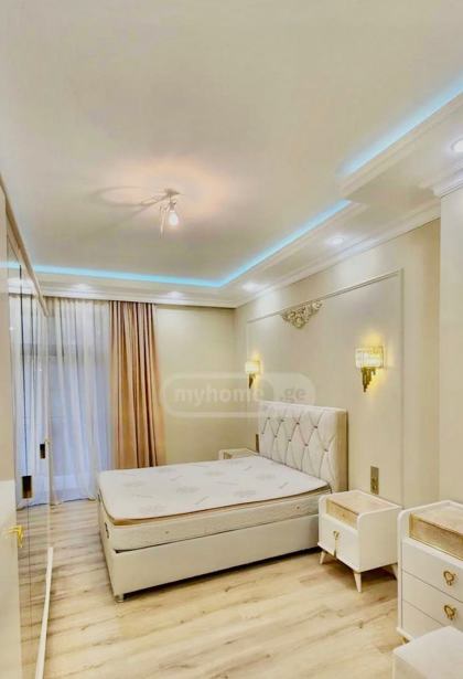 For rent: 3-room apartment in Gldani, 90 sq.m. in a newly built building on Vazha-Pshavela Street, with European renovation, 2 bedrooms, central heating, furnished and equipped with appliances. Price: $550.