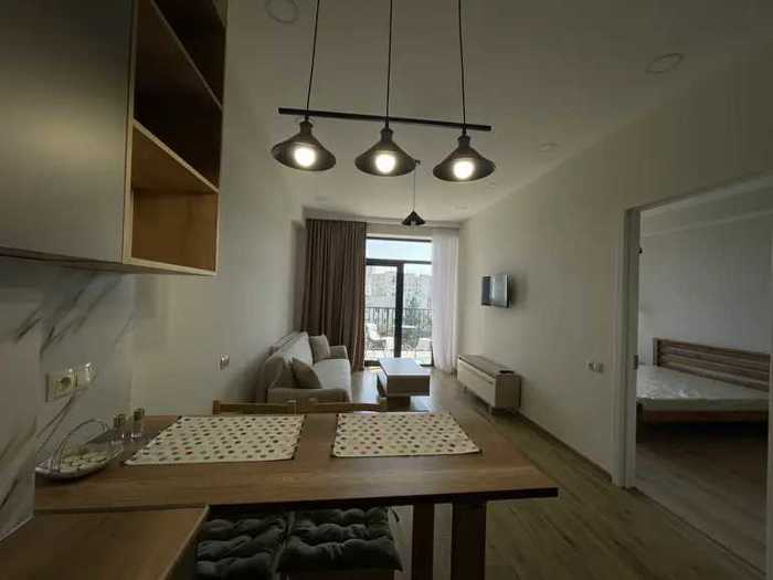 For rent is a newly built, modern apartment with an area of 55 square meters, located on the fifth floor of a ten-story building. The apartment has one bedroom and two rooms, providing a comfortable and cozy environment. The apartment has a balcony with beautiful views. Price is 1300 Lari. Phone: 551143695