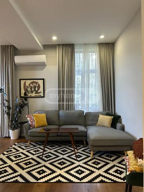 In the ecologically clean environment of Bagebi, a 4-room apartment with 3 bedrooms is for rent in the Metra Park building, one of which is in the 'Master bedroom' style, and the room also has a balcony. The apartment has an isolated kitchen equipped with necessary electrical appliances, including a dishwasher. You exit the living room and kitchen onto a summer terrace (50 m²), which makes the apartment even more comfortable and attractive. There are two ways to access the building, one from the Vake district and the other from the Saburtalo district, via the new Saburtalo-Bagebi connecting bridge. You will have your own place to park your car in the closed parking area. Near the building, there is the German International School of Tbilisi, kindergartens, banks, supermarkets, and other social facilities. It is rented for a minimum of 1 year, and 2 months of advance payment is required. The price is 1500€.