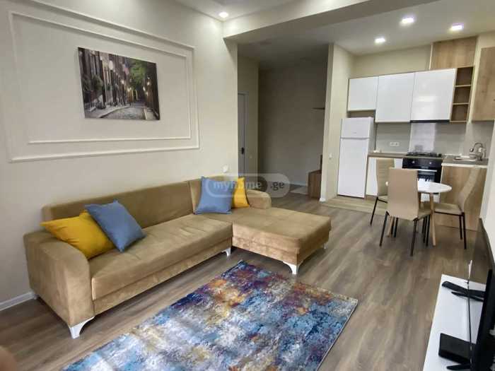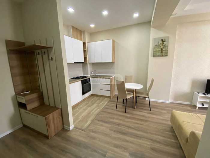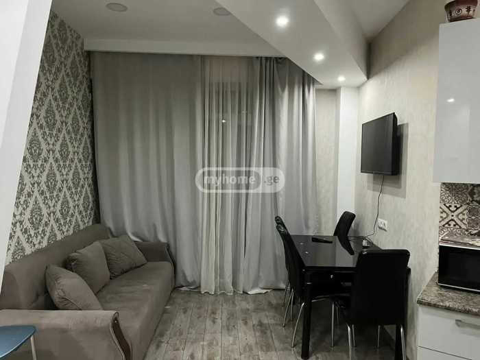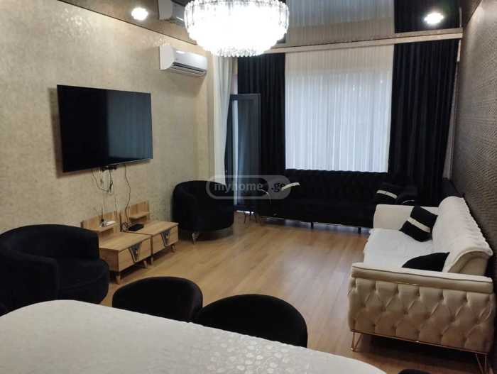 An apartment is available for rent in a premium class building in Binako. With all necessary inventory, furniture, and appliances. With a view of the city. The building offers 24-hour security and concierge services. Surveillance system, shared veranda for residents.