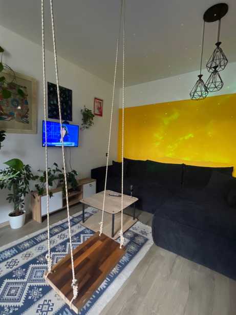 Apartment for rent for a short period of 3-4 months! A cozy and stylish apartment is for rent in Didgomi, in front of a school and kindergarten, on the 2nd floor of a 9-story building near the last bus stop. The apartment is equipped with all necessary furniture and appliances. The interior is bright, cozy, and tastefully arranged — with a comfortable bedroom, a large soft sofa, a swing hanging in the interior, green plants, and beautiful details. The apartment includes: • 160x190 comfortable orthopedic mattress • Wi-Fi and television • full kitchen appliances • hot water and heating • balcony • iron door and secured entrance Easy location to access, close to shops, a pharmacy, and transportation.