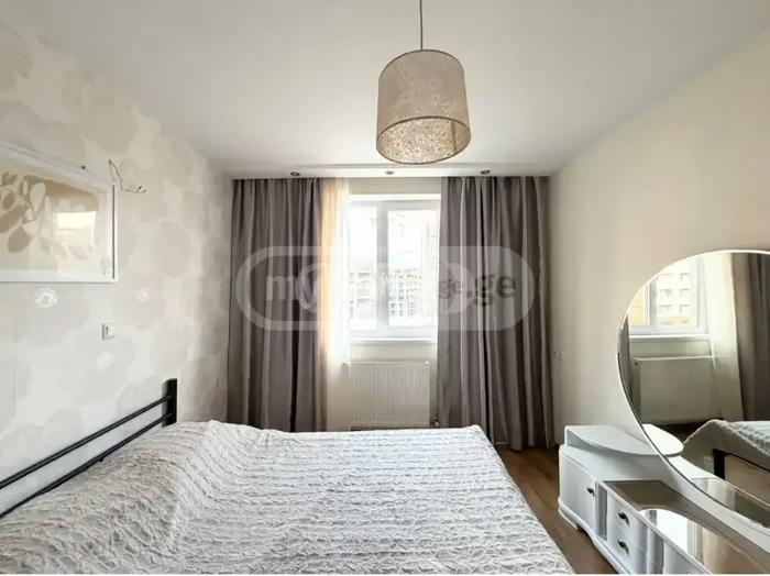 For rent, an unoccupied 2-room apartment in a newly built building on Demetre Tavdadebuli Street in Didgori, fully furnished, with retail markets nearby, with a two-month advance payment.