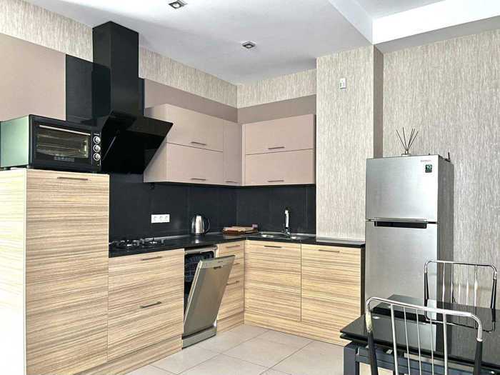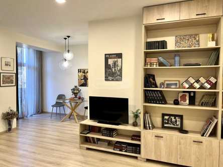 A newly renovated apartment for rent in a prestigious new building near Vake Park, A. Razmadze St. #52. The apartment is fully furnished with furniture and appliances, central heating, air conditioning, dishwasher, washing machine, dishes. The entrance is locked and cameras are installed. The apartment is located on the 4th floor of a 9-story building. It has 2 balconies.