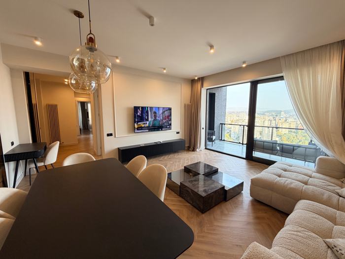 For rent in Axis Towers, on the 14th floor, a newly renovated 119.4 m² apartment (possible with a parking space), 2 bedrooms, 2 bathrooms, a large living room and a so-called. With a "winter garden", isolated kitchen (with all necessary appliances). With beautiful views on Chavchavadze Avenue and nearby. It can also be rented as an office. If you are interested, write to me or call me personally. I am the owner of the apartment.