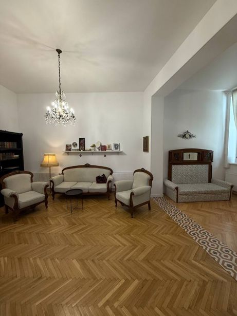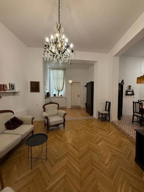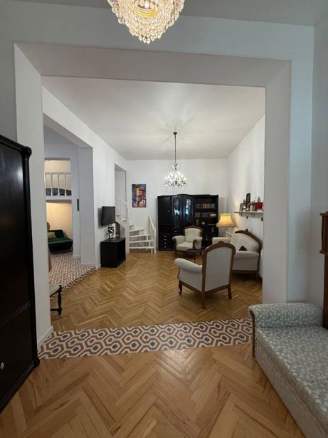 Urgent! A beautiful, high-ceilinged apartment (3.15) for rent with euro renovation, in a lovely yard in Tbilisi, on Mtatsminda, Zubalashvili Street (near the Supreme Court) with 5 isolated bedrooms (each with its own bathroom) and a studio living room. Suitable for a hotel, office, or family. Furniture as desired.