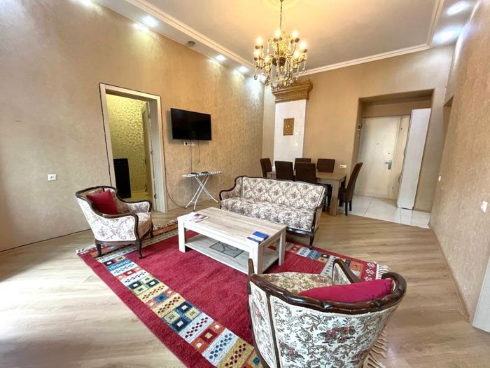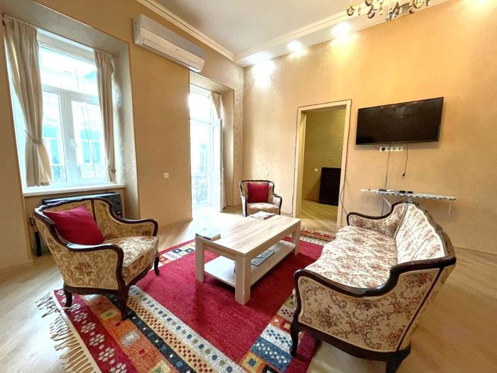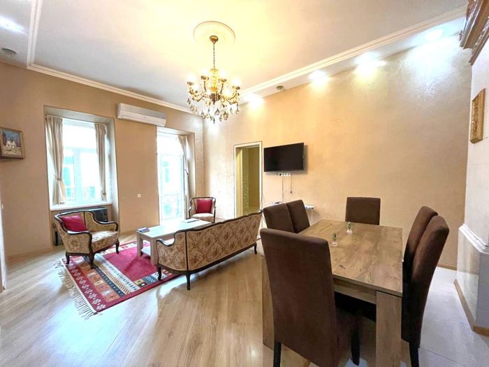 Apartment for rent in Sololaki on Machabeli Street, 3 rooms, 100 sq.m., 2 bedrooms, new kitchen, central heating, close to Freedom Square, with air conditioning, furnished with appliances, price 750$