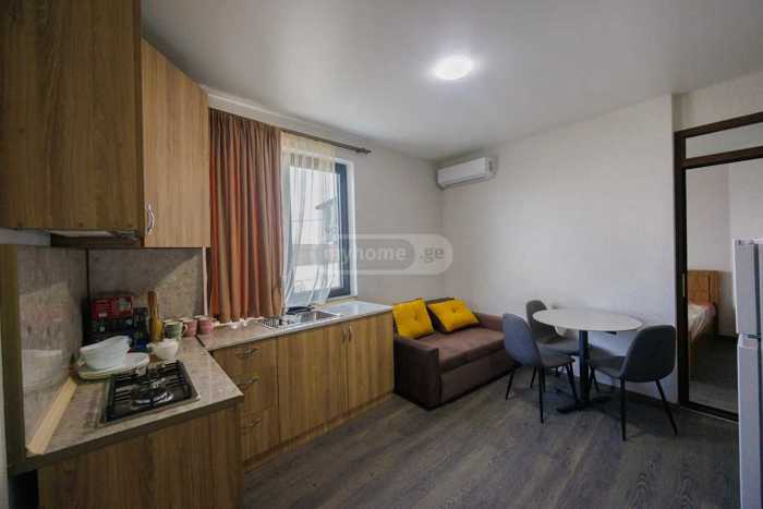 For rent in Iveri Tuba, a 43 sq.m. studio-type apartment. The apartment is newly built. It is rented with furniture and all necessary inventory for living. The house is uninhabited and has good views. Public transport stops in front of the house. It also has a parking space.