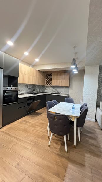 For rent, a 3-room apartment in a new building, with furniture and equipment, on the side of the metro
